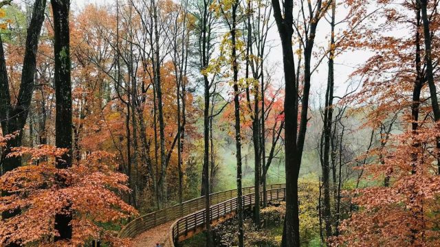 Mason Mill Park的棧道秋色絢麗。(圖源:Jonah McDonald)