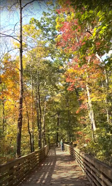 我永遠沉醉於Mason Mill Park棧道的秋色。需要說明:我任公園自然學家,或有偏愛。但即便每周在此工作40小時,我仍心嚮往之。South Peachtree Creek Trail連接Mason Mill Park、Medlock Park與埃默里大學,是DeKalb縣中部百英畝森林的瑰寶。