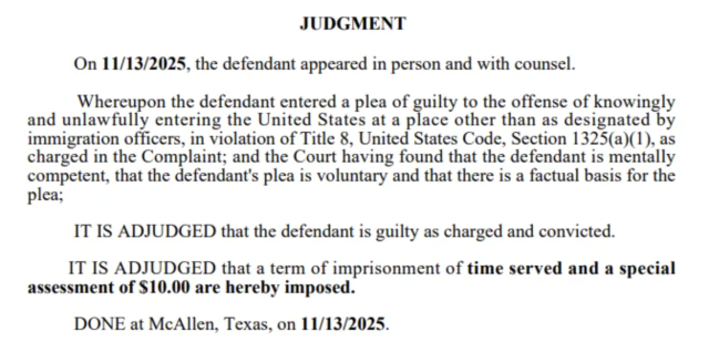 邊境巡邏隊指控趙某非法入境,這是一項聯邦輕罪。她於13日上午在美國地方法官胡安·F·阿蘭尼斯(Judge Juan F. Alan)面前出庭。