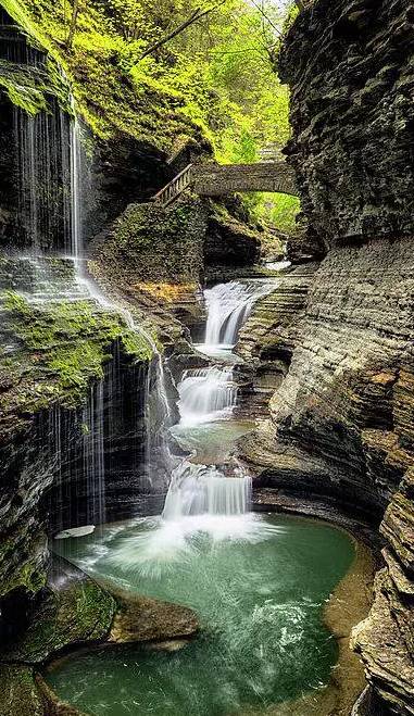 推薦理由:位於紐約州的五指湖區(Finger Lakes Region),兩英里(3.2公里)長的窄長形峽谷內噴涌而下19處瀑布,極具特色。