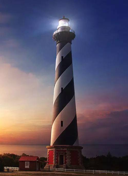 推薦理由:哈特拉斯角燈塔是矗立在北卡州海島鏈上的地標性建築,也是世界上最高的磚混燈塔。塔身黑白兩色的螺旋圖案設計使其成為全美最具「顏值」的燈塔。