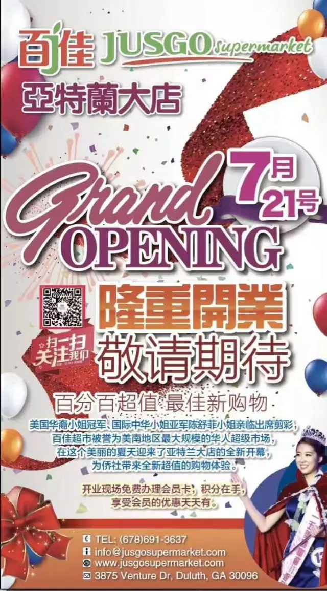 365天無休服務是我們的承諾,願為您送上最暖心的食品。7月21日開業典禮,期待您的祝福和愛的光臨!地址:3875 Venture Dr, Duluth, GA 30096