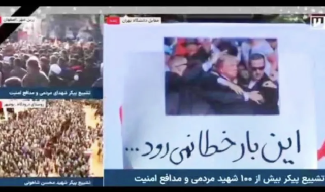 當地時間周三,伊朗國家電視台在新聞畫面中,播放了美國總統特朗普前年在賓夕法尼亞州競選集會遭遇槍擊的畫面——子彈擦過耳朵、鮮血清晰可見。
