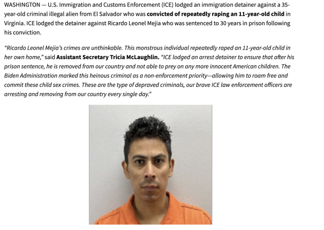 2024年10月22日,法庭宣判。Mejia身穿橙色囚服,低頭認罪,被控三項「性侵13歲以下兒童」重罪。法官怒斥:「你毀了一個家庭的未來!」判處75年監禁,僅緩刑45年——意味著他將在監獄度過餘生。庭審現場,母親泣不成聲,女孩由社工陪同缺席。法官額外裁定:服刑期滿,Mejia將移交ICE,遣返回薩爾瓦多,終身禁止入境。
