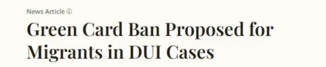 該提案還將把此類酒駕犯罪行為歸類為美國移民法規定的嚴重重罪,使這些人永久喪失獲得移民福利(包括合法永久居留權)的資格。