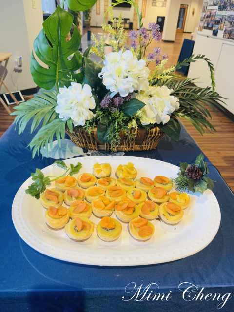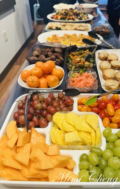 青青貢獻五香豆乾,Annie 師姊端來一大盒水果。