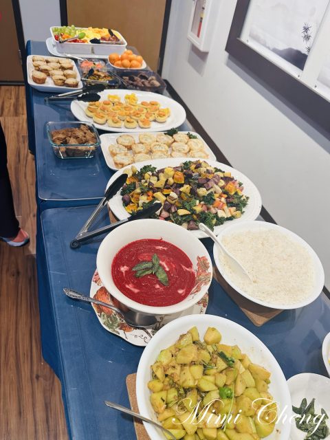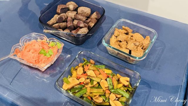 羅師姊帶來壽司薑與烤紅薯,琬玲準備了涼拌菜,