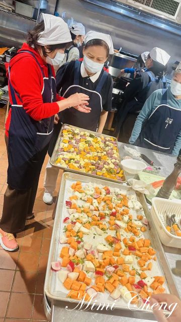 Jennifer Lu 楊老師為甜菜根、胡蘿蔔與馬鈴薯削皮,我則負責切成小塊。