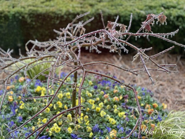 住在城東北的小夥伴發來照片,說看見了薄薄一層雪。我們這邊沒有雪,只在樹枝上看見一串串晶亮的冰棱,像是冬天小心翼翼留下的簽名。手機里的群聊不停刷新,大家密切關注凍雨的走向,彷彿這場天氣,是一場需要全城圍觀的現場直播。