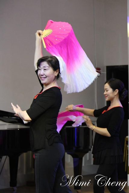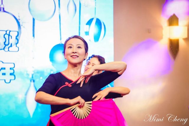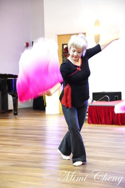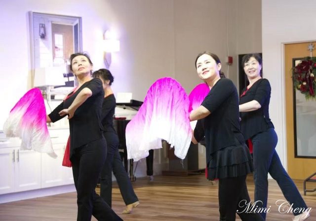 周三班學員以紅綢扇舞拉開序幕。舞蹈借王菲春晚歌曲的意象,