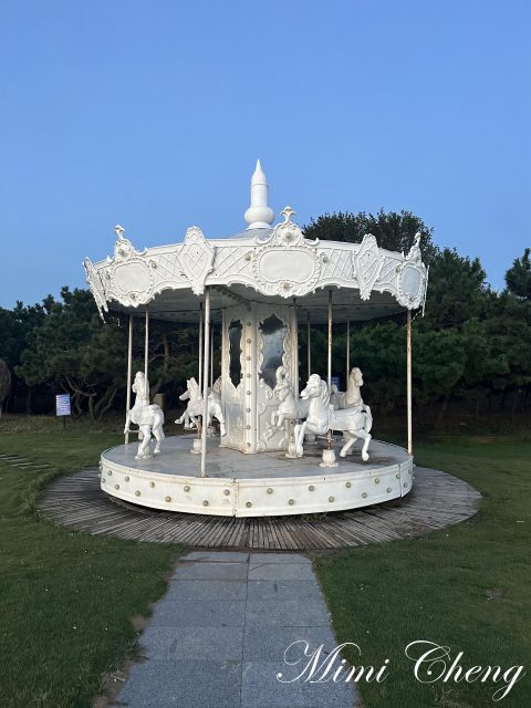 我沿木棧道慢跑取暖,一路串聯起十六個打卡點:從純白旋轉木馬、