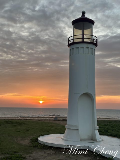 回身剎那,朝陽驀地躍出海面!我停在燈塔旁,靜靜記錄這天地交輝的瞬間。