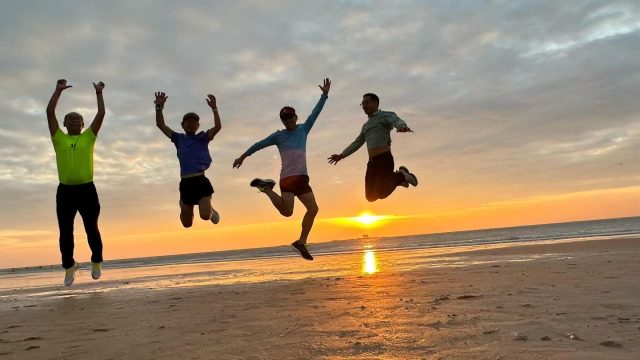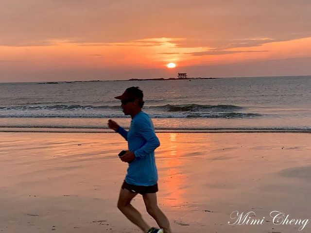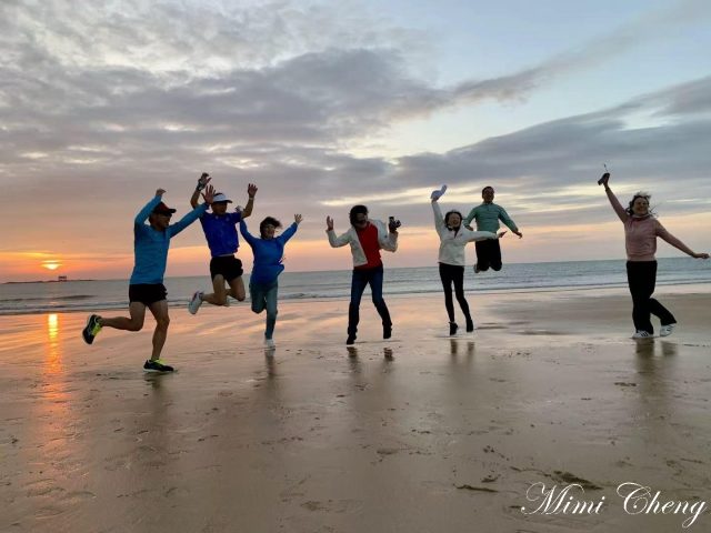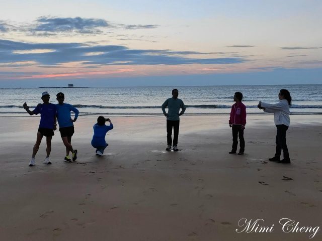 五時三十分,晨光未醒,人影已聚。除卻Digger與孔清兩位跑者,還有麗萍、劉浪、燕三位同行。我們六人踩著薄霧,向海而行。