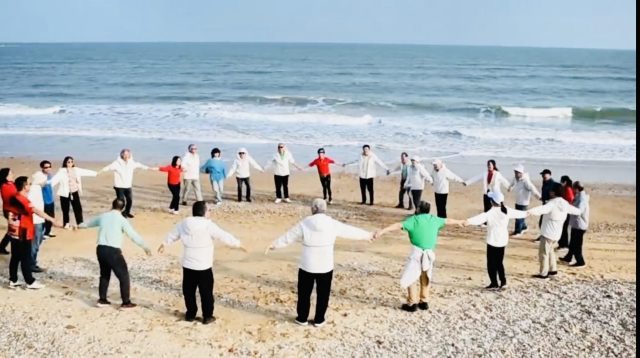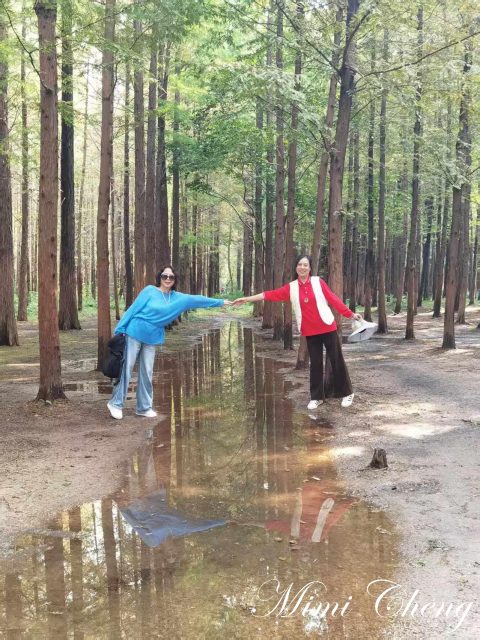 風裡帶著沁人的涼,麗萍見我衣衫輕薄,便解下圍巾為我繫上。那柔軟的暖意瞬間裹住肩頸,也裹住了這個清晨第一份感動。