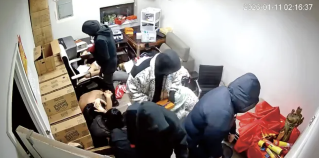 根據監控攝像頭錄像,1月11日凌晨2點左右,7名戴頭套、戴手套、只露出眼睛的蒙面歹徒,闖入法拉盛35大道的一間公寓內,他們有的持槍、有的持刀,命令屋內9名年輕華人男女全部集中到一個房間,並要求他們雙手抱頭並蹲下。