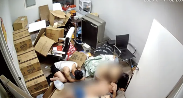 在影片後段,當歹徒離開後,畫面中可聽見留在現場的數名男女慌亂抓起衣物,有人低聲說出「他們走了嗎」、「等等看他們走了再說」等話語。