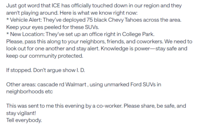2026年2月初,亞特蘭大都會區南端College Park成為了聯邦與地方、執法與抗議的輿論風暴眼。美國移民及海關執法局(ICE)證實,一個此前未公開的衛星辦事處已正式投入運行。