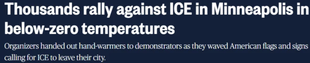 美國國家氣象局數據顯示,示威當天當地最低氣溫降至華氏零下17度,體感溫度一度跌至零下35度。但低溫並未削弱抗議規模。從周五起,數千名示威者聚集在市中心,高呼「ICE OUT」口號,要求對涉事執法人員展開問責。