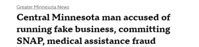 明尼蘇達州中部一名45歲男子被控經營「空殼公司」、虛報收入,並騙取食品券(SNAP)及醫療補助等公共福利。